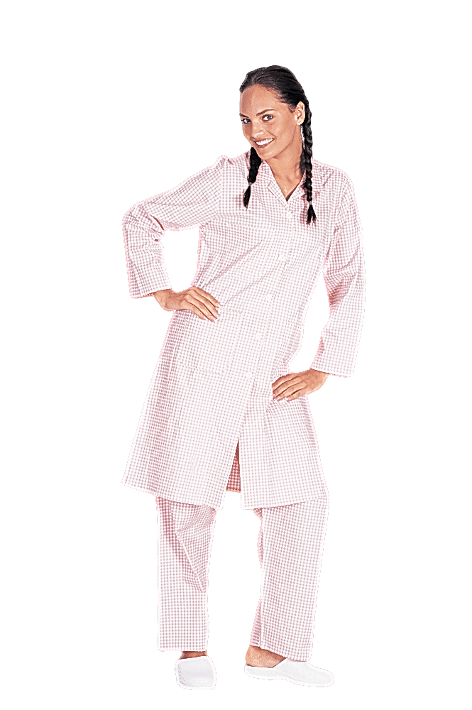 Azerbaycan'dan şık ve kaliteli bir pamuk seti.Azerbaycan'da üretilen kadın önlük ve pantolon seti, %100 gabardin kumaştan yapılmıştır. Pembe-beyaz kareli desenlerle şık bir görünüme sahiptir. Önlük düğmeli ve spatsızdır, pantolon ise lastiklidir ve cebi bulunmaktadır. Kullanımı pratiktir.