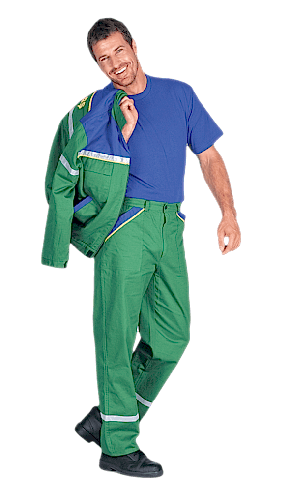 Azerbaycan'da giyim üretimi.Azerbaycan'da üretilen 245gr Haki Yeşil Gabardin kumaştan yapılmış %65 Polyester - %35 Pamuk harmanı Ceket Pantolon Takımı, işlevsel özelliklere sahiptir. Ceket düğmeli ve spatlıdır, gri reflektörlü cepleri ve detaylarıyla dikkat çeker. Pantolon ise gri reflektör bantları ve fermuarıyla öne çıkar. Beli lastikli pantolonun ponteriz dikişleri dayanıklılığı arttırır. Bu takım, iş elbisesi olarak hem şık hem kullanışlıdır.